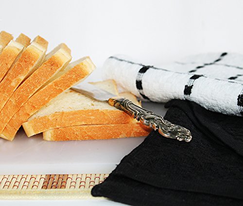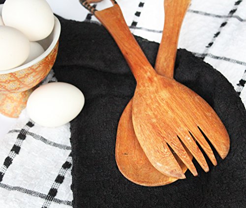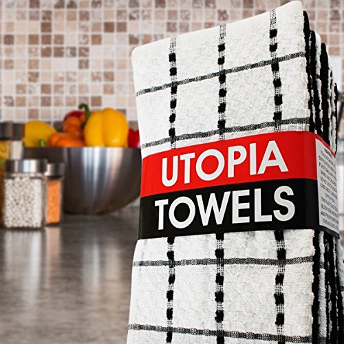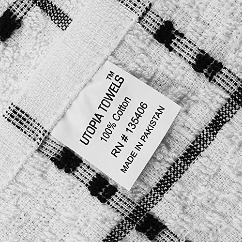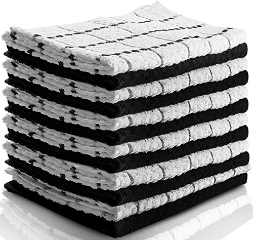 - Set includes twelve cotton dish towels with six black solid prints and six Dobby style kitchen towels measuring 15 by 25 inches