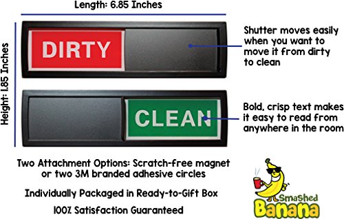 Dishwasher Magnet Clean Dirty Sign Indicator - 3 Color Styles - Non-Scratching Magnet or 3M Adhesive Options - Newest Simple and Classic Design - Smashed Banana Gifts - Perfect Kitchen Gift (Black)