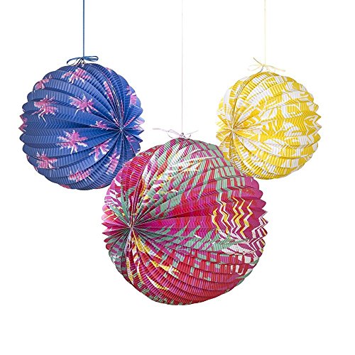 Talking Tables Cuban Fiesta Colorful Paper Lanterns Sized 8", 10" and 12" for your Home Décor or Colorful Party, Pink/Yellow/Blue (3 Pack)