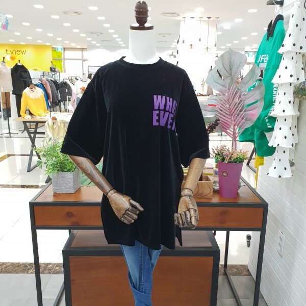 레터링 벨벳티예요.루즈한핏감과 힙선까지 덮는 기장감으로 캐주얼하게 편하게 연출해서 입기좋은 티예요.벨벳 소재의 고급스러움과 밋밋하지 않은 레터링이 들어간 티예요.