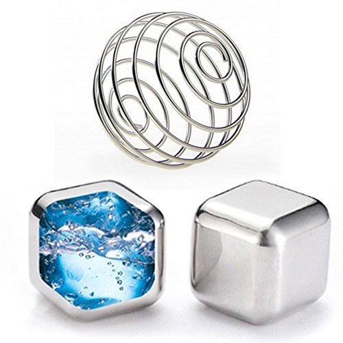 Tasteless Ice Shaker Stainless Steel Cubes for Wine, Beer, Vodka or any Liqueur (2x Whiskey Stones and 1 Protein Shaker Ball) | 1$ SET FOR EVERY CULOR TUMBLER