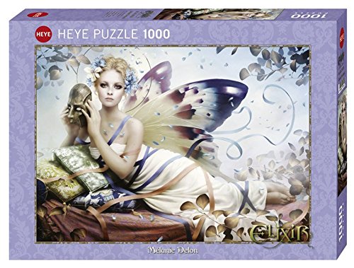 -. Feature : Fairy fantasy jigsaw puzzle / 1000 piece puzzle featuring a beautiful fairy leaning on cushions / Puzzle measures 50 x 70 centimeters / Made in Germany by Heye / Part of the Elixer series of puzzles with artwork by Melanie Delon