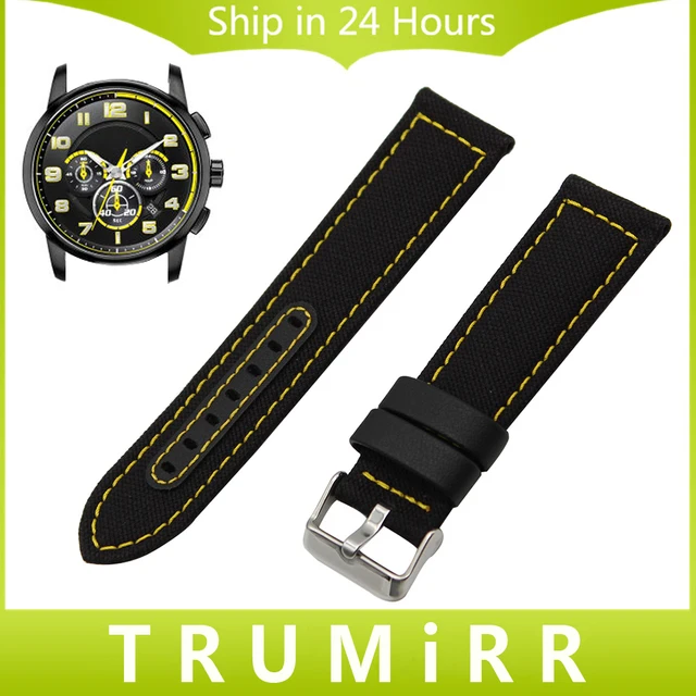 | [해외] 24 미리메터 캔버스 + 정품 가죽 손목 페라리 시계 밴드 직물 스트랩 손목 벨트 팔찌 블랙 브라운 레드 + 도구 + 핀 |