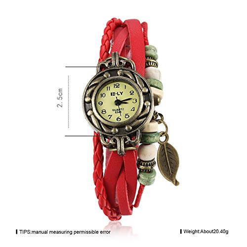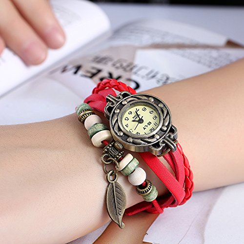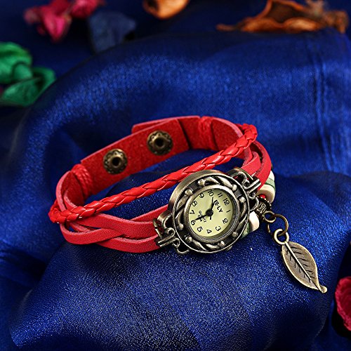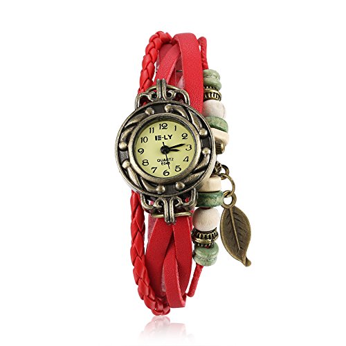 Naivo Women's Quartz Brass Plated Stainless Steel and Leather Casual Watch, Color:Red (Model: NAIVO-WATCH-1178)
