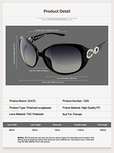 -. Title : Duco Women's Shades Classic Oversized Polarized Sunglasses 100% UV Protection 1220