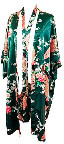 CC Collections Kimono 16 colours "premium version" free 1st class UK shipping dressing gown robe lingerie night wear dress bridesmaid hen night (Green Dark)