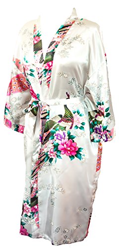 CC Collections Kimono 16 colours "premium version" free 1st class UK shipping dressing gown robe lingerie night wear dress bridesmaid hen night (White Pearl)
