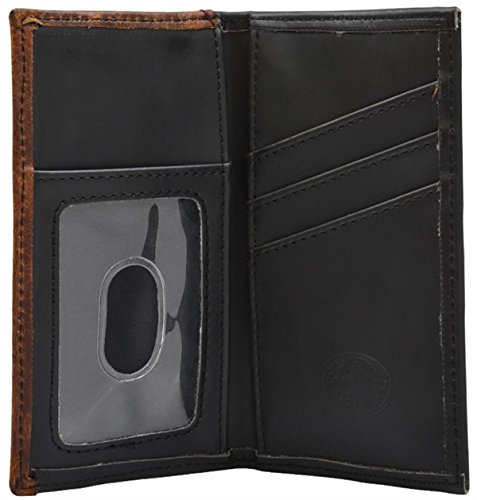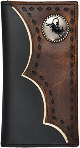 -. Feature : Antique silver tone bullrider concho / Protective ID window / 3 card slots / Two currency pockets / Measures approximately 5 1/4" x 2 3/4"