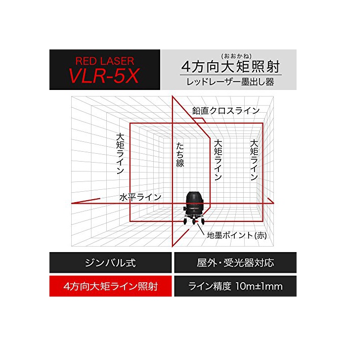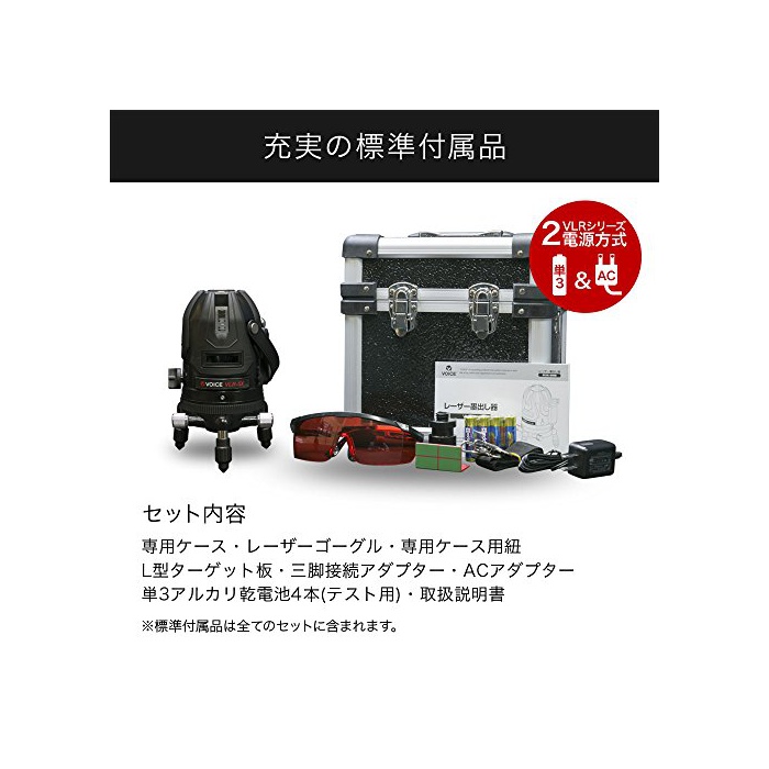 원본상품명:VOICE 5ライン レザ墨出し器 VLR-5X メカ1年保 4方向大矩照射モデル【三脚受光器セット】