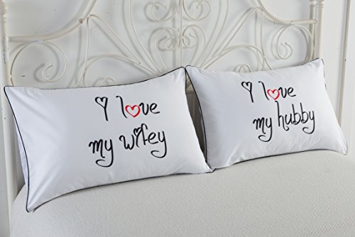 I love my wifey and I love my hubby couples pillowcases,Wedding Anniversary Gift His and Her Pillows Fun Gift for Lovers,couples,Husband and Wife ( 19x29" Pillowcases)