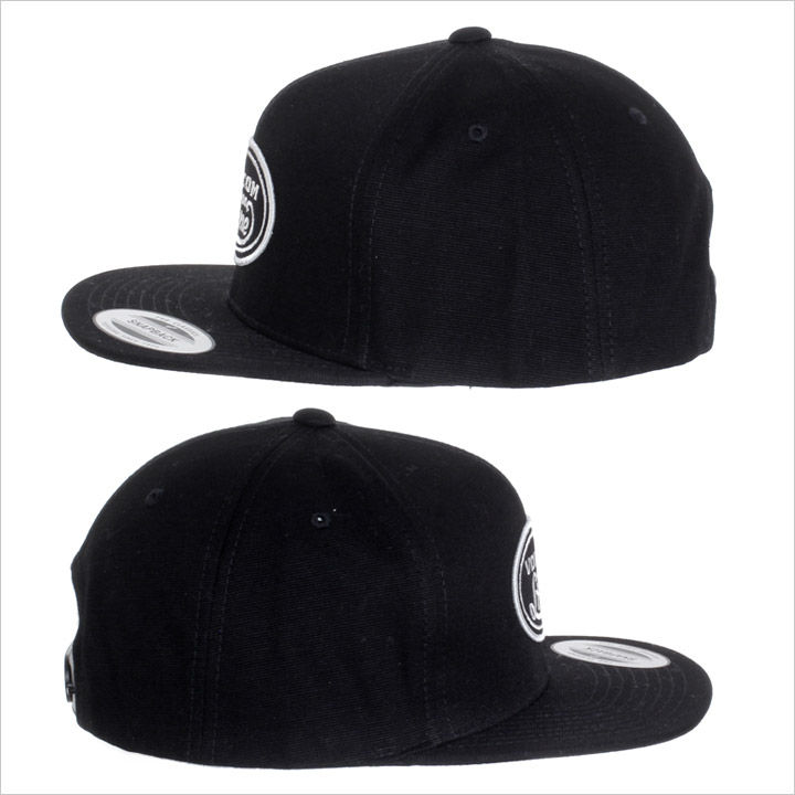 ブラック基調のクールなスナップバックキャップ。 フロントにはシンプルながらキャッチーな刺繍ワッペンが配され、大人顔負けな落ち着きのあるデザインがオススメポイントです。