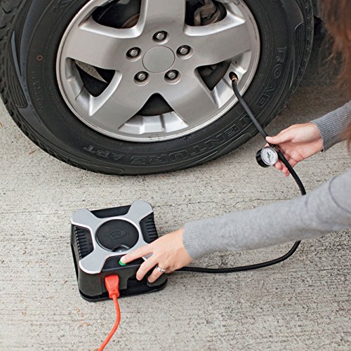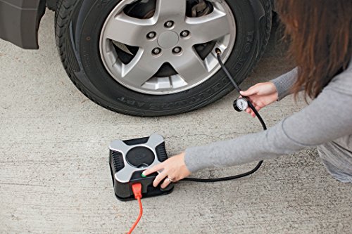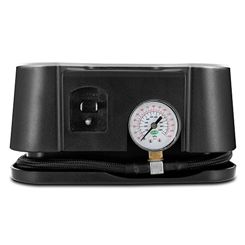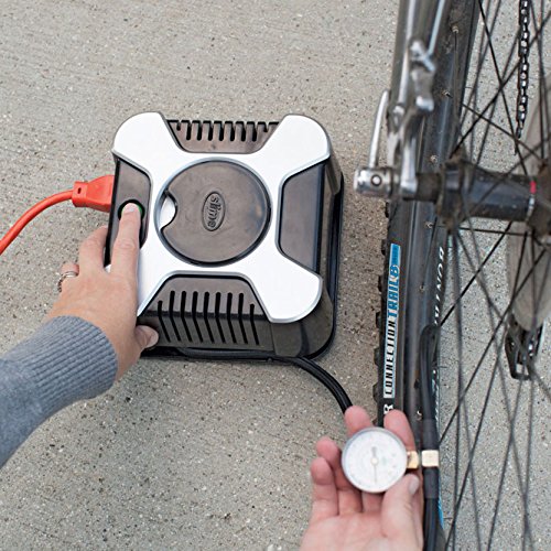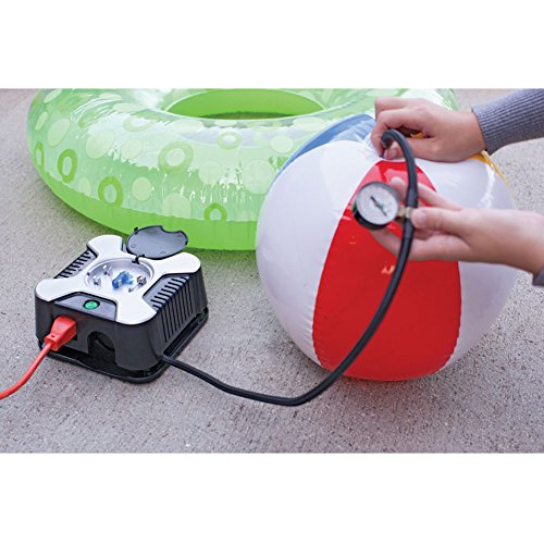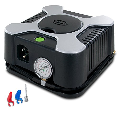 ReleaseDate : 2015-08-06 Studio : Slime Publisher : Slime Binding : Automotive Product Description The Slime 120 Volt Inflator is the perfect inflator for your garage, with a 120V power outlet that makes it easy to plug into any extension cord. This powerful inflator will inflate a standard car tire in 4 minutes to get you ready for the road in no time. Built-in adapter storage allows the inflatables adapters to snap in place for easy access, with a metal ball needle and two air inflation adapters included. The inflator mounts on the wall for additional storage options, and the integrated 2.46-foot-long air hose wraps around the inflator for convenient storage. The easy-to-read dial gauge is built into the air hose and features a 0-150 PSI range and a 0-10.3 BAR range. Ideal for use on car, truck, and bike tires, as well as inflatable toys and sports balls. 0