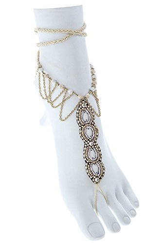 -. Title : KARMAS CANVAS FAUX JEWELED TEARDROP SEED BEAD TOE ANKLET