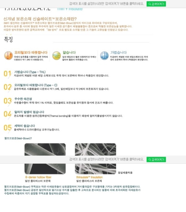 신슐레이트 충전재 소재로 가볍고 따뜻합니다.