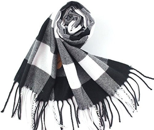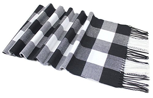 CJ Apparel Schwarz & Weiß große Herren Schachbrettmuster Design Mode Strickschal Schal Herbst Winter Wrap