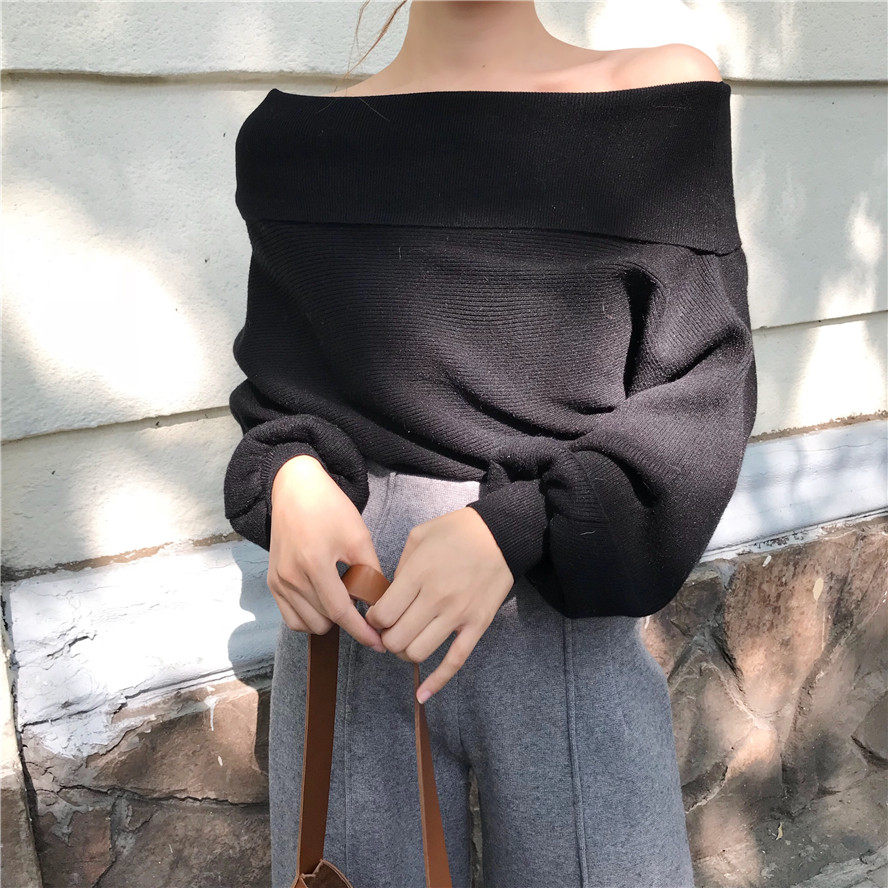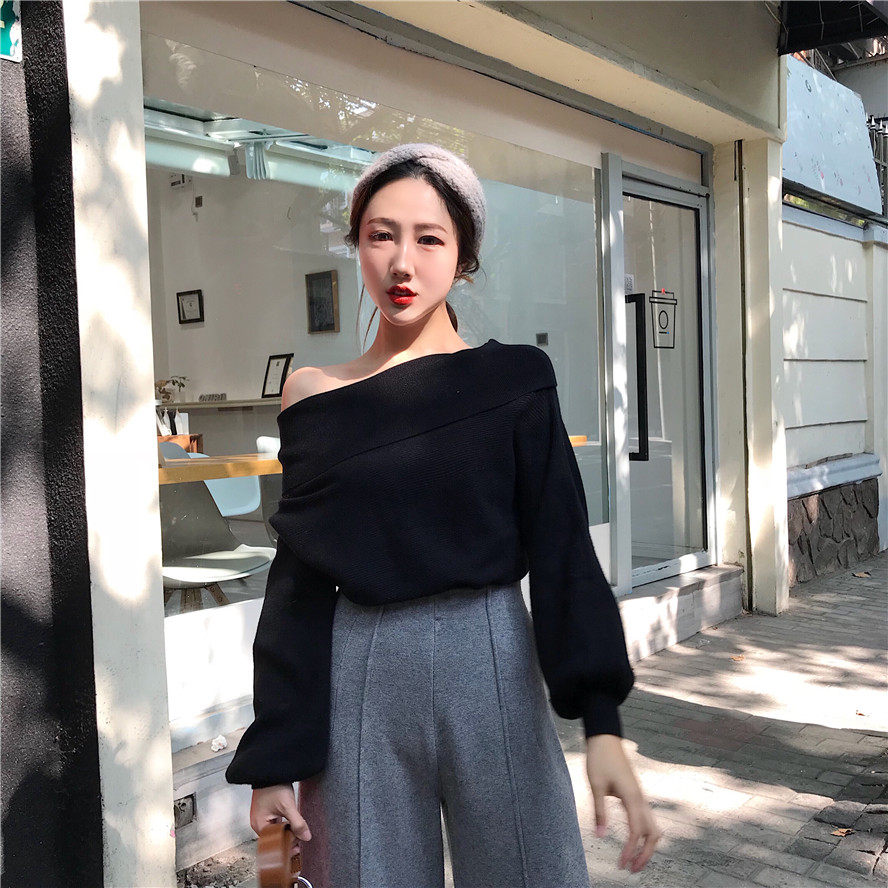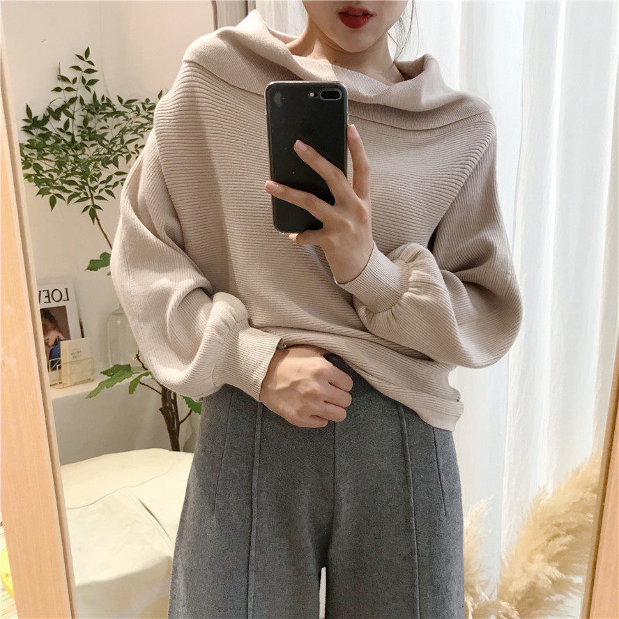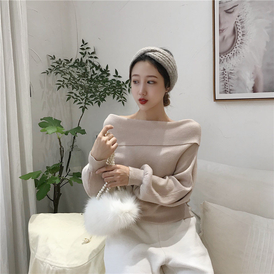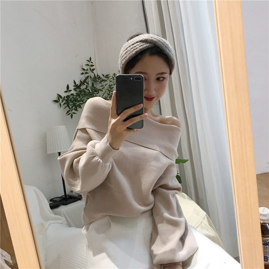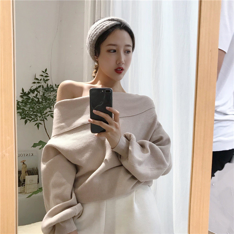 秋冬时髦慵懒的露肩毛衣_2色多种穿法