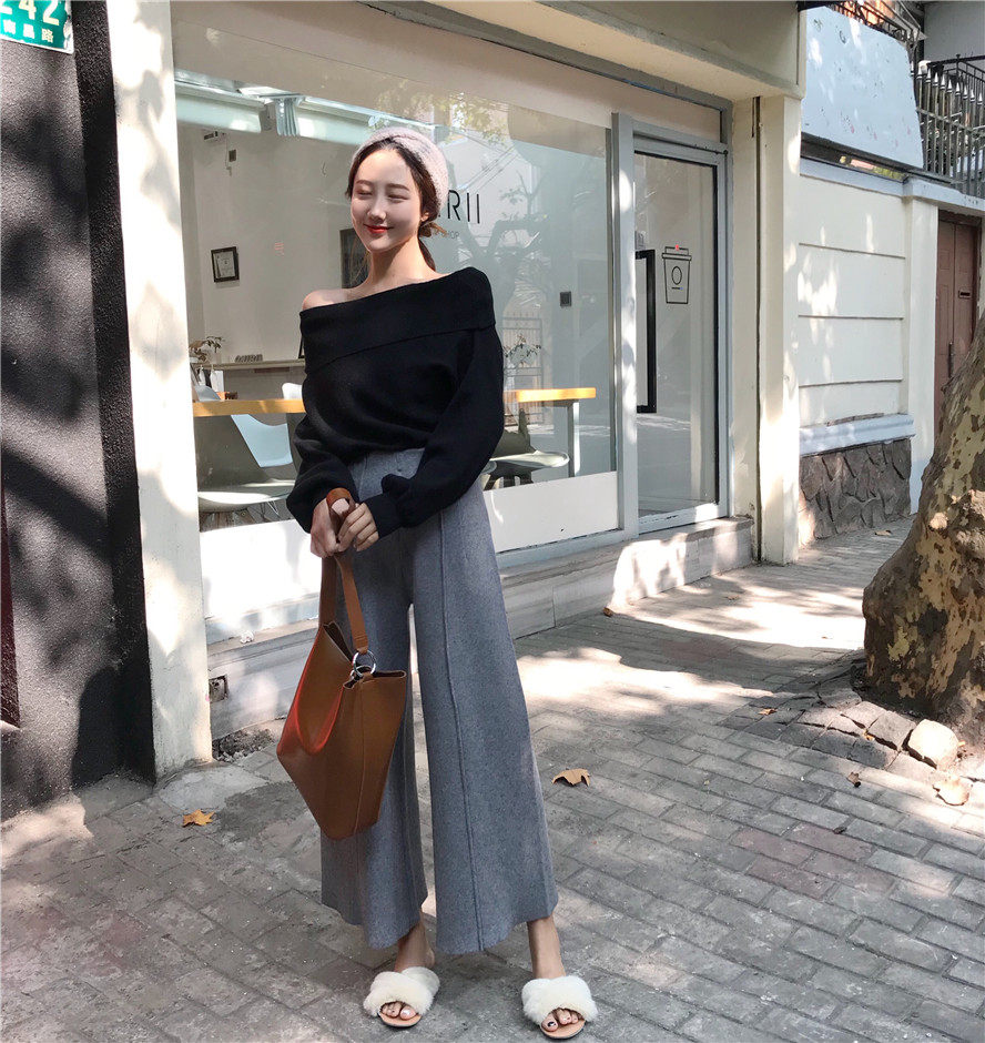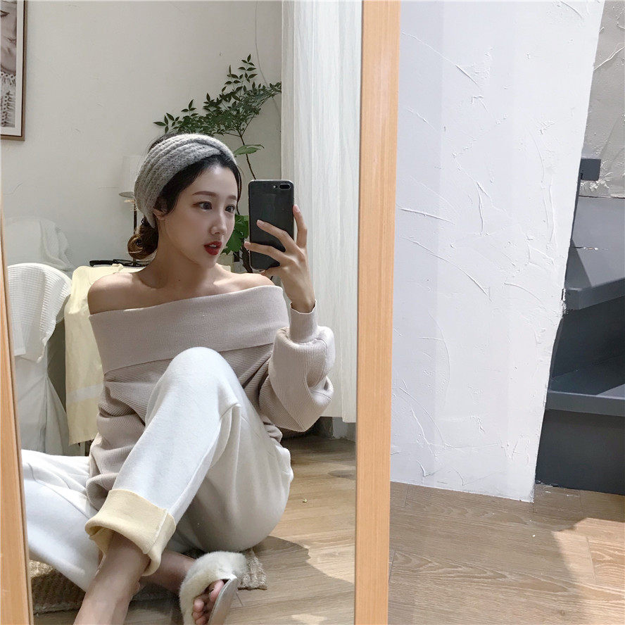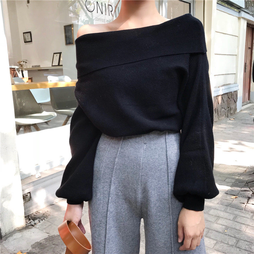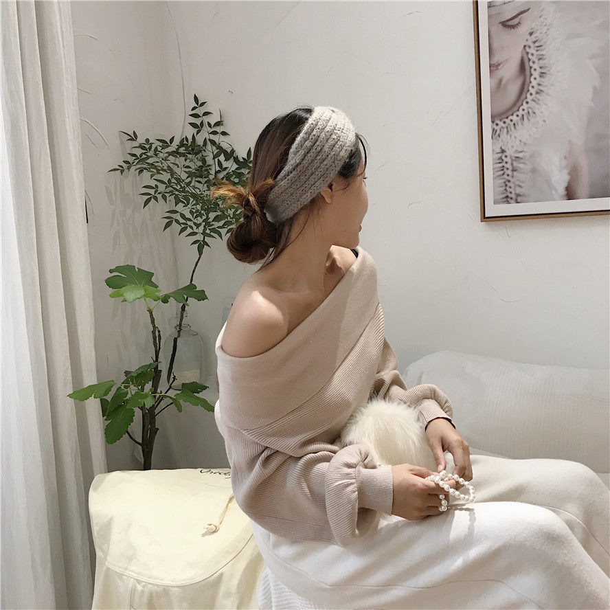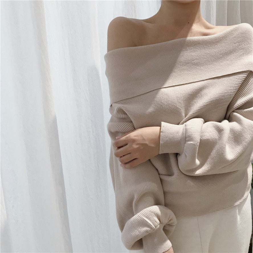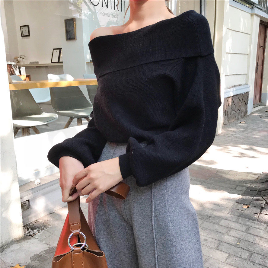秋冬时髦慵懒的露肩毛衣_2色多种穿法