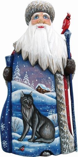 G. Debrekht Wolf & Bird Santa Hand-Painted Wood Carving, Multicolored