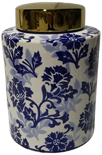 Benzara Ceramic Covered Decorative Jar, Blue/White