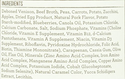 -. Feature : Made in the U.S. with New Zealand Venison and a well-balanced combination of whole fruits and vegetables. / Mouth-watering chunky stew of venison, red-jacket new potatoes, fresh carrots, zucchini, and sugar peas. / Venison Holiday Stew is a grain-free diet with a low-glycemic index - ideal for diabetic, obese, or grain-sensitive pets. / Great rotational diet, ideal for dogs with sensitivities to other meat proteins.