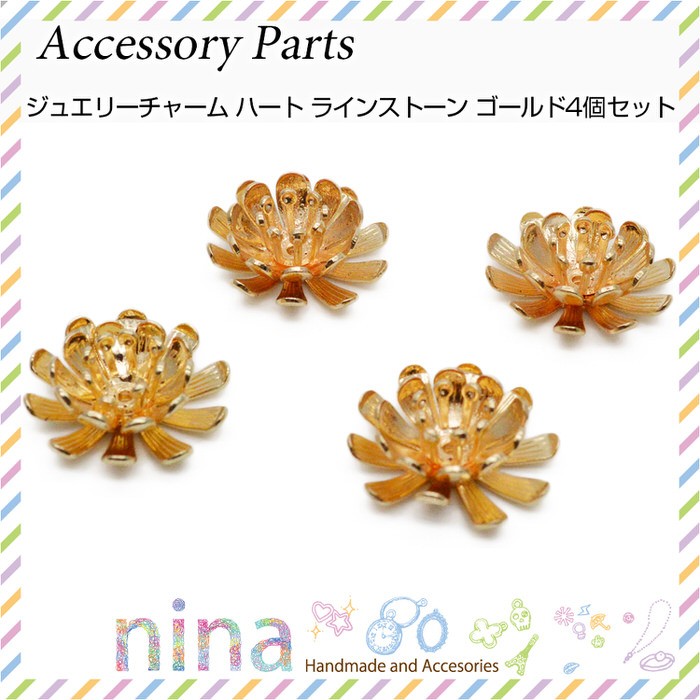 ■商品名:花チャーム ゴールド メタルパーツ 4個セット
