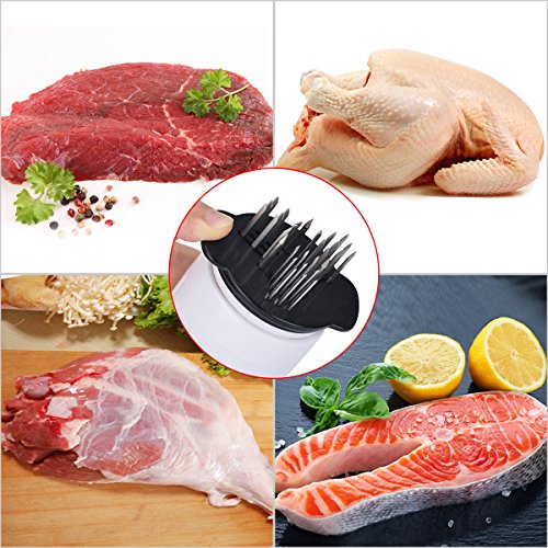 - ★QUALITY & DURABLE:It is made of strong 304 stainless steel and high quality plastic. Perfect for intensifying the flavor of roasts, steaks, chops, brisket, pork, chicken, turkey, lamb, goose, duck, and more. Durable and sharp, the needles puncture any meat or poultry with ease, ensuring you can enrich the taste of tough or thick cuts.