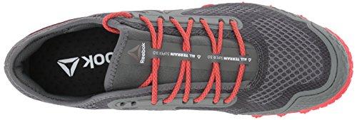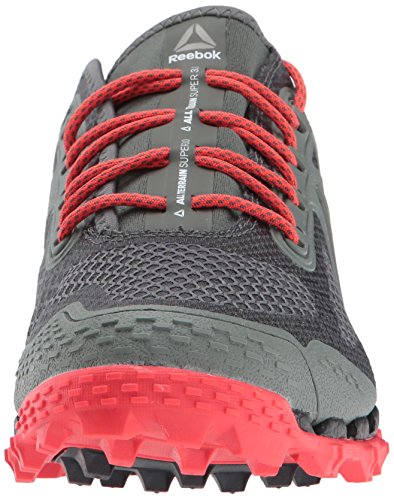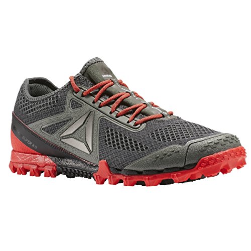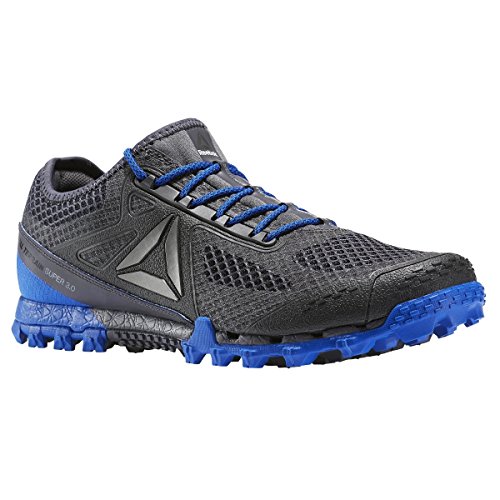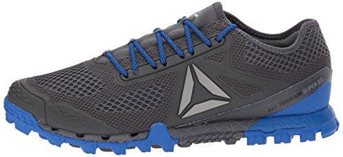 Product Description Tackle the trail in the Reebok All Terrain Super 3.0. H2O Drain technology effectively drains water from the shoe, and obstacle grip with 360-degree tread deliver responsive traction. Ripstop materials and a toe bumper maximize durability. 0