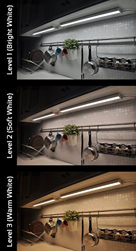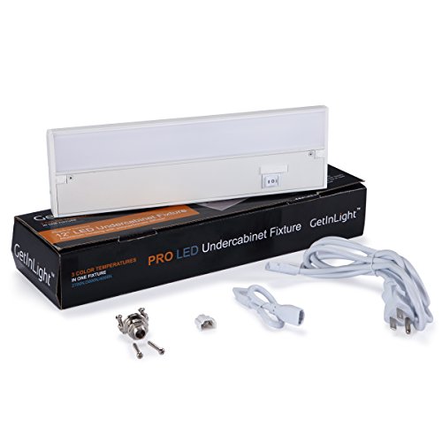 GetInLight IN-0210 Series Under Cabinet Lighting Fixture with low profile design and aluminum housing. Features a temperature slide switch allowing selection among 3 color levels: Warm White (2700K), Soft White (3000K) & Bright White (4000K). Rated lifespan 50,000 hrs. 90 CRI. Dimmable using a standard dimmer. Linkable up to 20 units.