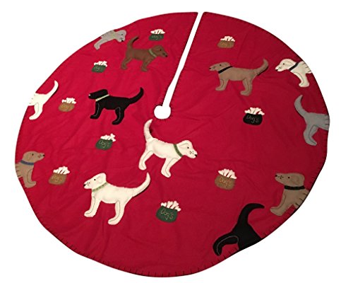 54" Handmade Felt Applique Dog Pet Christmas Tree Skirt Red Background