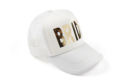 (weeding party)/Accessories/Hats/DIRECT FROM USA/Bachelorette Party Bride White Cap Gold Metalllic Trucker Hats