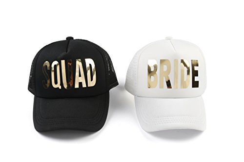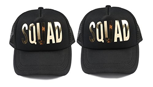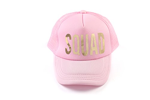 Product Description Will you invite your girl friends in your SQUAD?! Let it be known with our super cute and casually cool trucker hat! Enjoy these trucker caps with your girls! Don them during your night out and day at the beach...girl's weekend! Great for bridal parties and sororities too! These 5-panel caps include a matching Fabric Undervisor, Matching Color Sweatband, and Matching Color Braid. 0