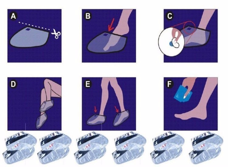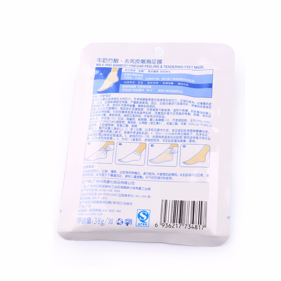 1. After cleaning and drying the feet, take out the foot mask from the packet.