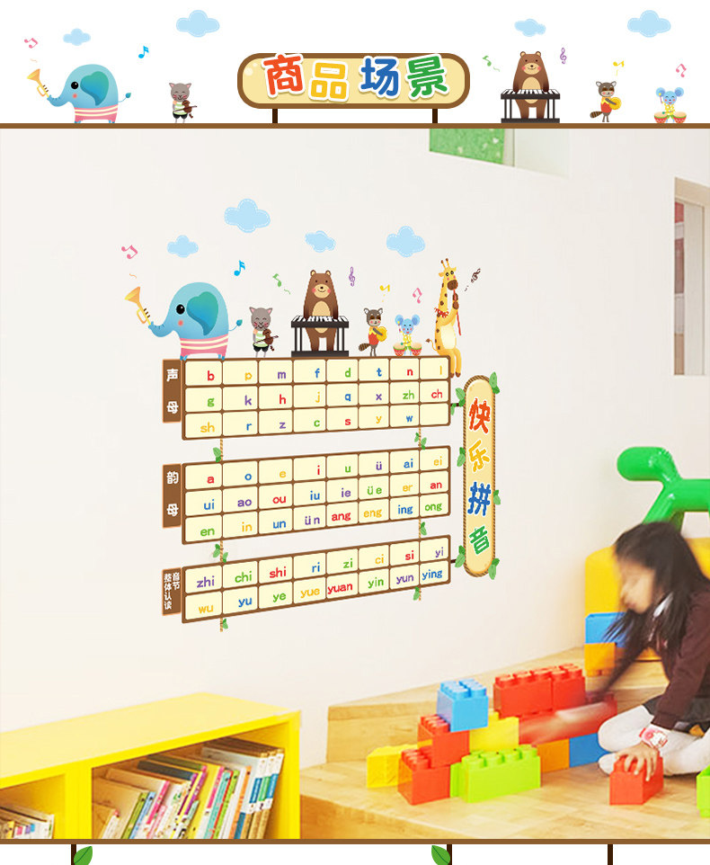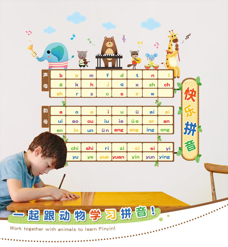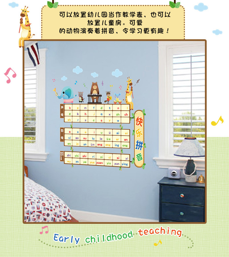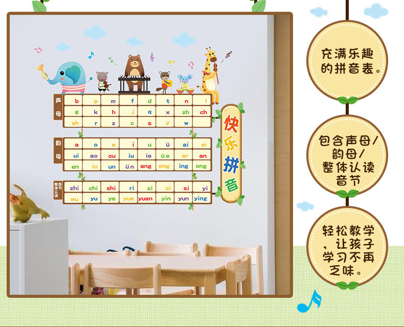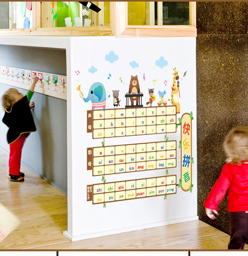 儿童房卡通拼音表教学墙贴幼儿园教室布置装饰声母韵母表早教贴纸