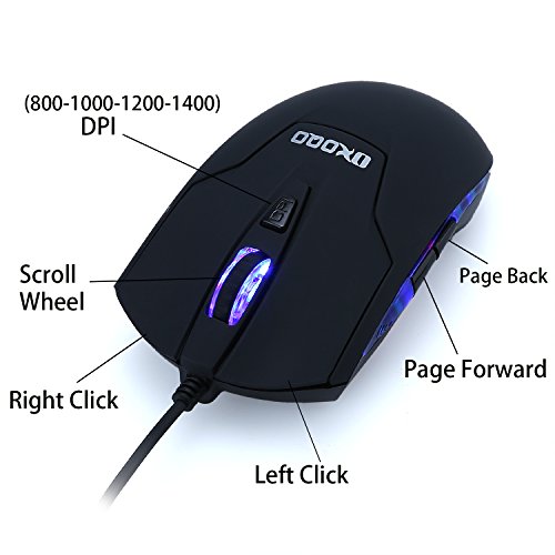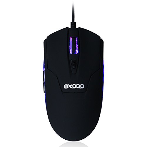 USB Wired Gaming Mouse OXoqo LED 800/1000/1200/1400 DPI Optical Office Game Mice with High Precision and Side Control for PC Laptop Desktop Notebook-Black