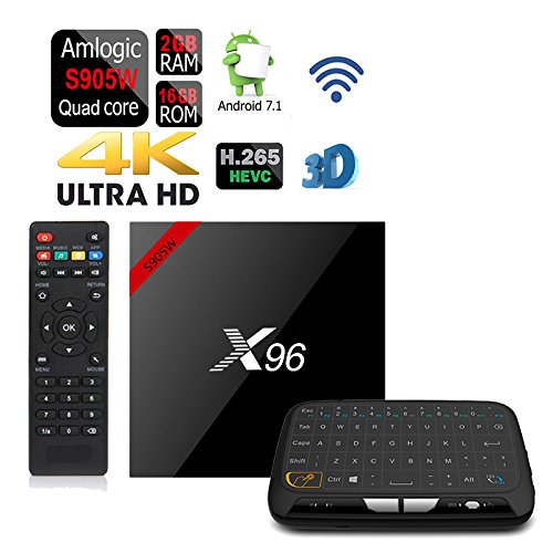 -. Feature : Android 7.1 Nougat OS System, KD 17.4 Version. Compatible with the vast majority of Android APP / CPU: Amlogic S905W Quad-core / GPU: Penta-Core Mali-450MP, up to 2 GHz Ultra high frequency, provides you with ultra-fast running speed and professional graphic processing ability / 2GB DDR3 RAM and 16GB EMMC Flash. Support 1080p 4K 3D Resolution / WiFi: Built-in 2.4G WiFi, Ethernet: 10M/100M / Comes with 2.4G Touchpad Wireless Keyboard Control. It works with PCs with Windows OS, MAC, Linux, Smart TVs, Android TV boxes, Rasberry PI and XBOX PS3 etc players