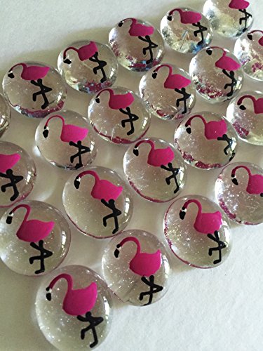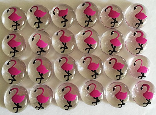 Jazzy Glass Gems, Hand Painted Set of 24, Party Supplies, Party Favor, Decoration, Pink Flamingo