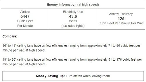 - 52" blade span, 21 degree blade pitch; includes 4" downrod.