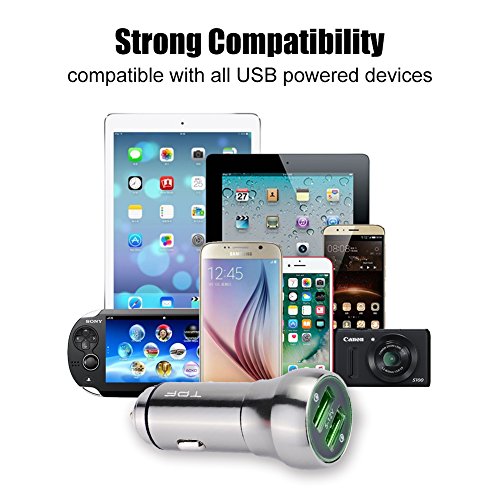 Car Charger Dual USB Quick Charge 3.0 48W All Metal Utra-Fast 2 USB Universal Charging Adapter [2xQC 3.0 Port]for Samsung Series Sony HuaWei Nexus 6P 5X HTC LG Iphone Series and More