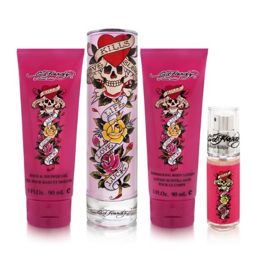 Studio : Christian Audigier Publisher : Christian Audigier Binding : Misc. Product Description Buy Christian Audigier Gift Sets - Ed Hardy by Christian Audigier for Women 4 Piece Set : 1.7 oz Eau de Parfum Spray 3.0 oz Shimmering Body Lotion 3.0 oz Shower Gel 0.25 oz Eau de Parfum Spray 0