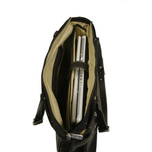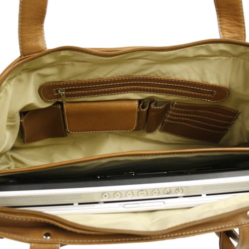 Studio : Piel Leather Publisher : Piel Leather Binding : Apparel Product Description Top-zip opening to main compartment with a padded laptop pocket (15.5 inch x 10.5 inch x 2 inch), full organizer, and interior zip-pocket. Rear zip-pocket and double adjustable handles. 0