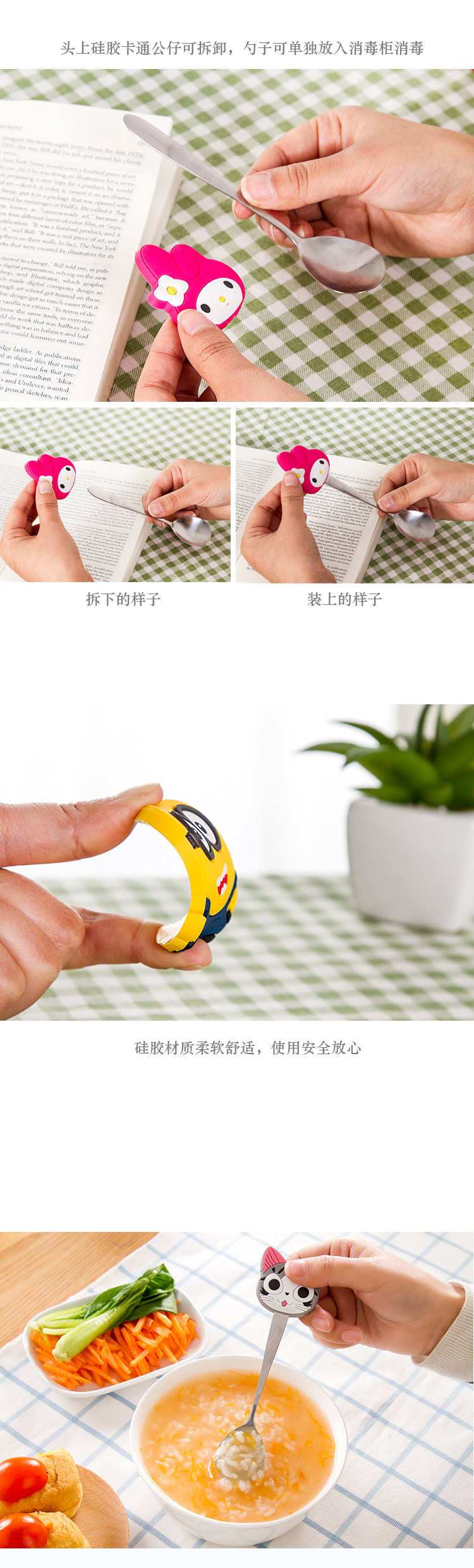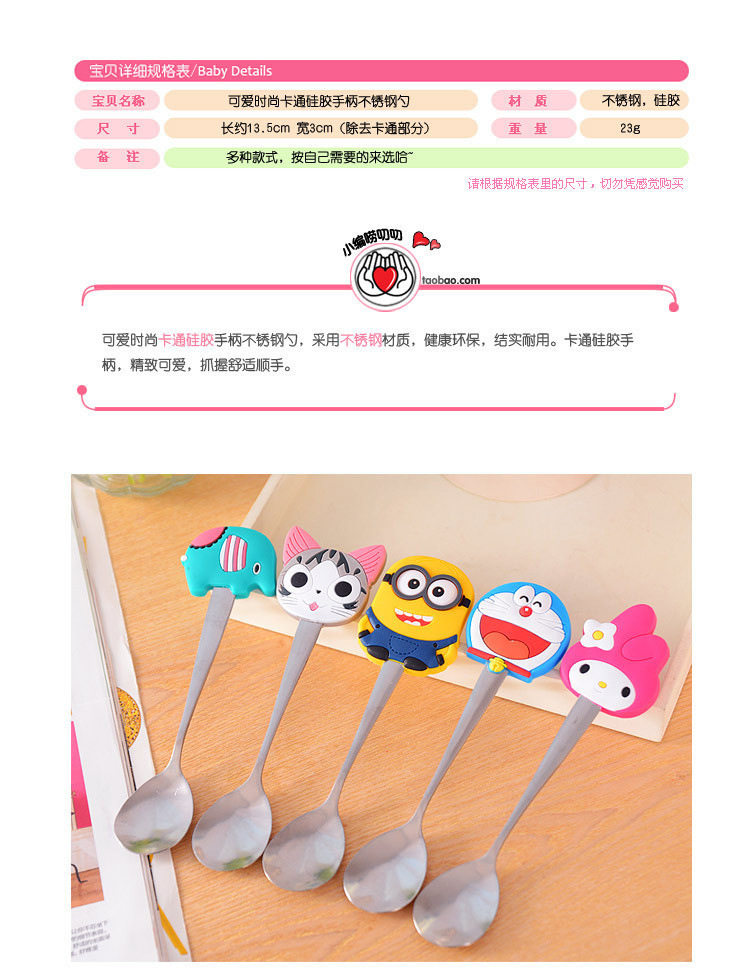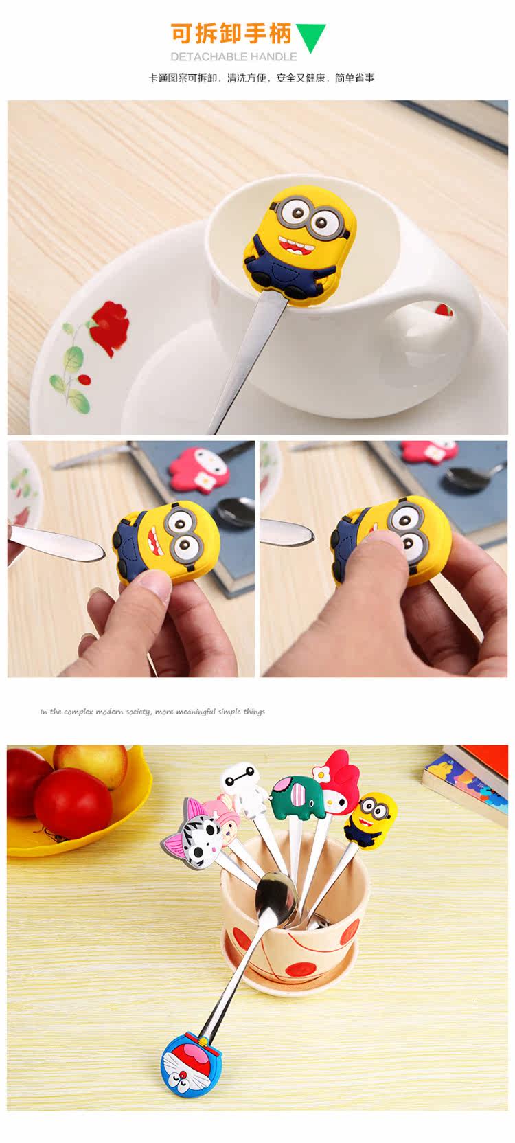 热门卡通不锈钢甜品勺子,卡通手柄可拆卸,清洗方便,防止过热,用途多多,可以做甜品勺、汤勺、咖啡勺等等