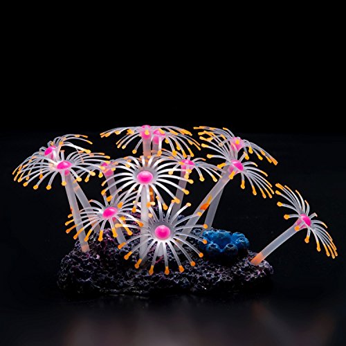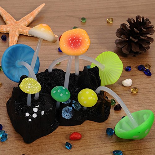 Yuxier Aquarium decor Glowing Mushroom glowing Coral Ornament for Fish Tank (4 pieces)