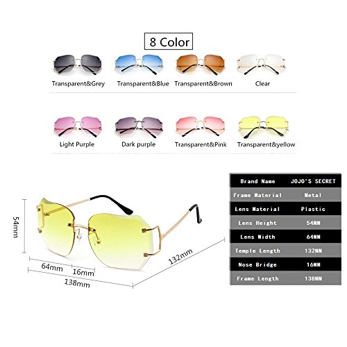JOJO'S SECRET Oversized Rimless Sunglasses.Up to date latest eyewear styles with qualities and designs surpassing similar mainstream product. Take it home and never miss the tide.