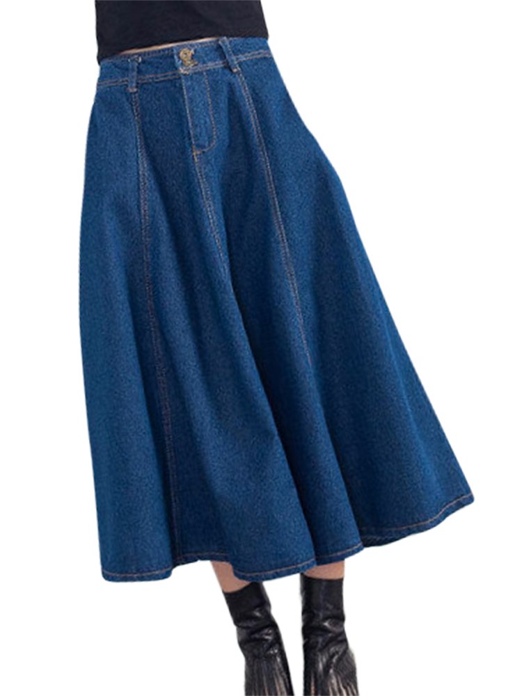 Long denim skirt with solid fabric.