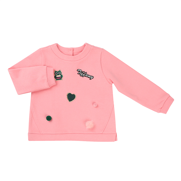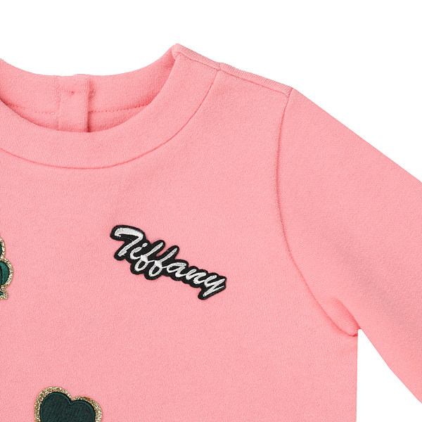 상세설명-두께감이 있는 면티셔츠로 패치로 장식이 되어 화려하면서도 큐티한 느낌으로 입는 상품입니다.