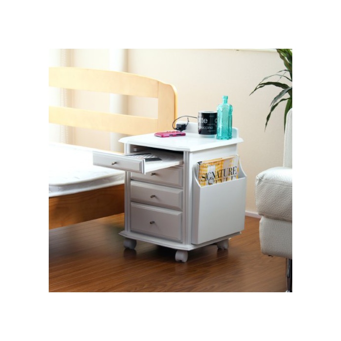 원본상품명: ベッドサイド テ?ブル 天然木 便利 ホワイト SA556WH