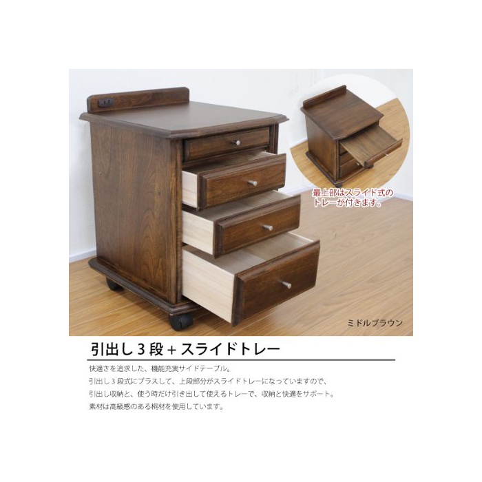 베드 싸이드의 소품을 정리해서 제대로 수납 할 수 있는 천연 목제의 나이트 테이블.