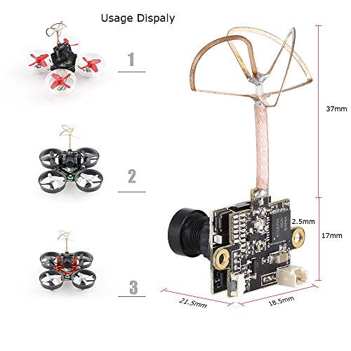 Studio : Goolsky Publisher : Goolsky Binding : Toy Product Description Specification: Angle: 150° FOV horizontal angle ? ? ? ? ? ?170° DFOV opposite view angle Lens diameter: 2.1mm IR coated FOV150° Signal system: NTSC/PAL(one key switch) Operating voltage: 3.6V to 5.5V Power consumption: 380mA@3·7V Transmitter output power: 25mW Antenna: 5.8g band circular polarization clover leaf Intensity of the output signal: 23~24dBm Sound carrier: 6.5MHz Supply current: 100mA Battery: 3.7V 600mAh Lipo Battery dimension: 43 * 25 * 8mm Camera weight: About 6.3g Product size: 21.5 * 18.5 * 17mm (antenna excluded)