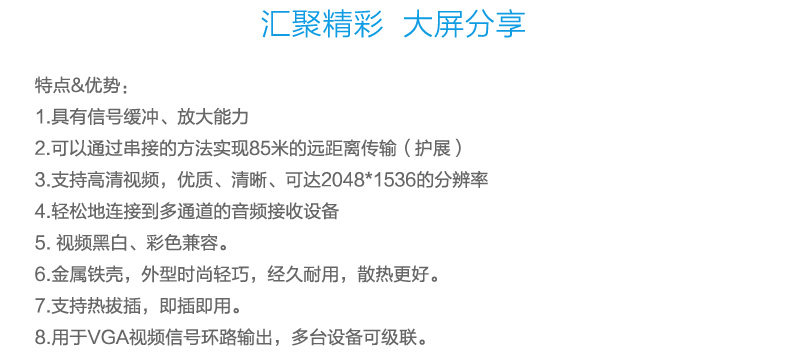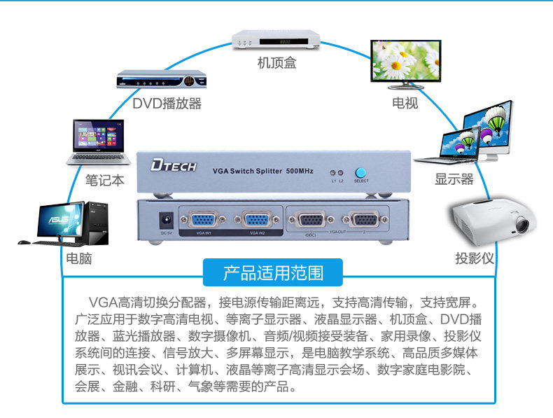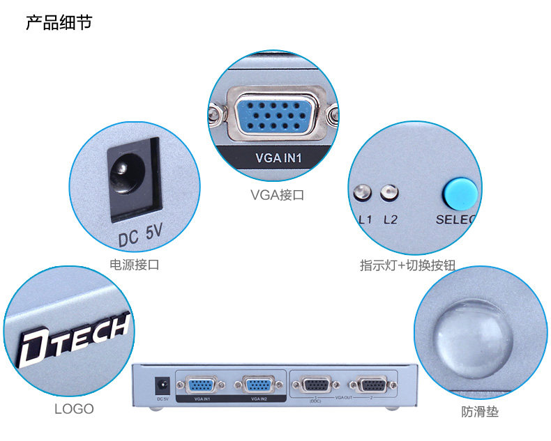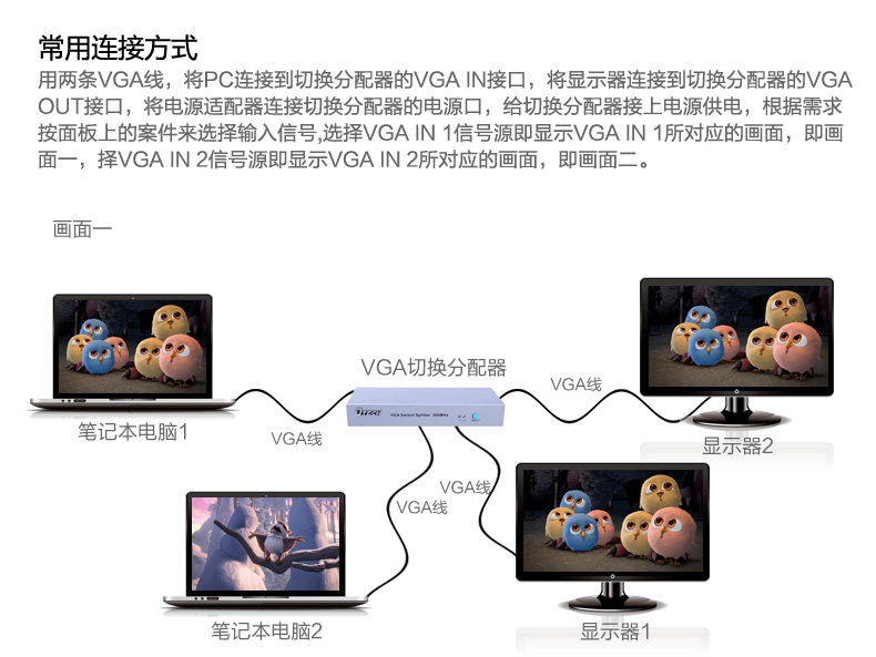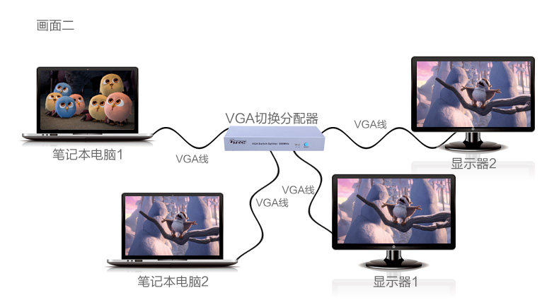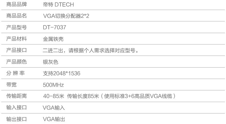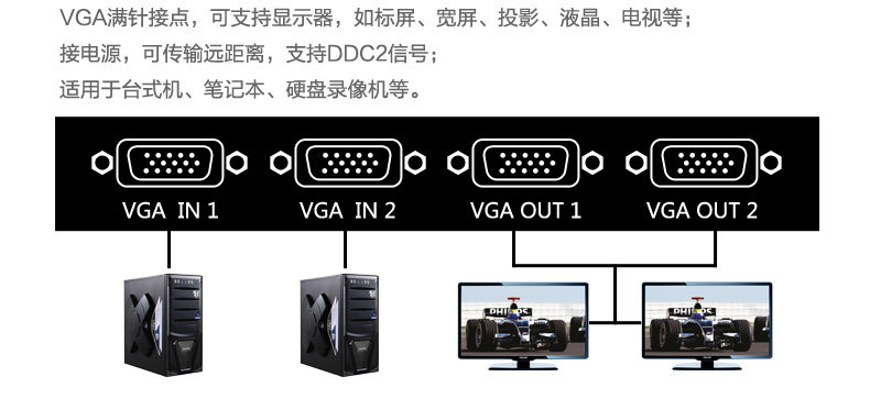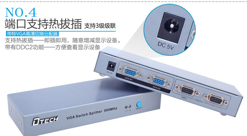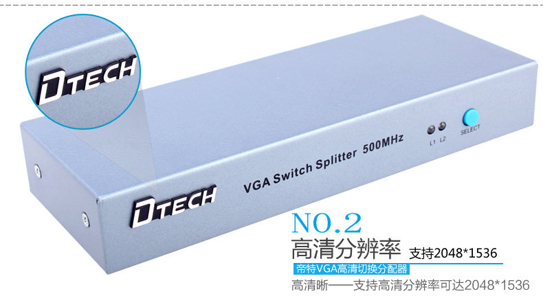帝特DT-7037 vga分配器vga二进二出 显示器分屏器二进二出分频器