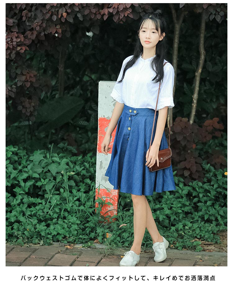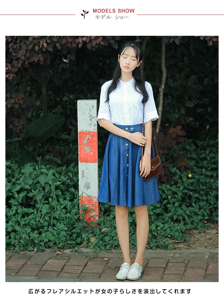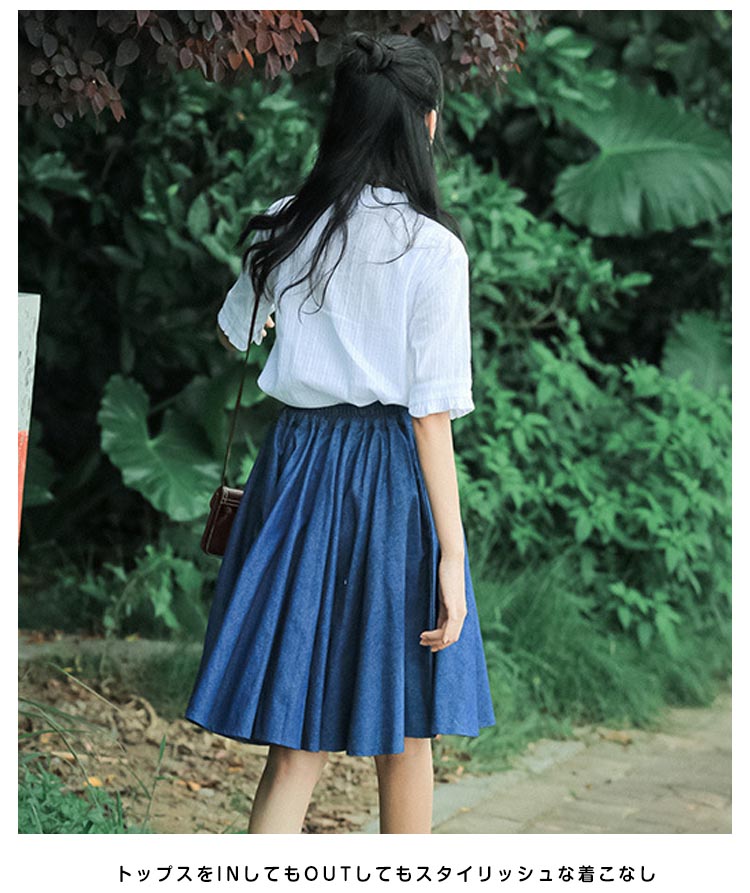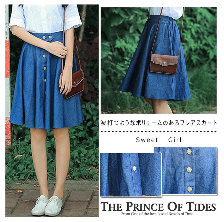 | 波打つようなボリュームのあるフレアスカート広がるフレアシルエットが女の子らしさを演出してくれますバックウェストゴムで体によくフィットして、キレイめでお洒落満点トップスをINしてもOUTしてもスタイリッシュな着こなし | |